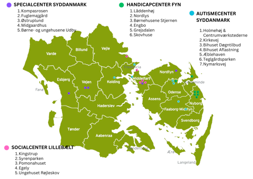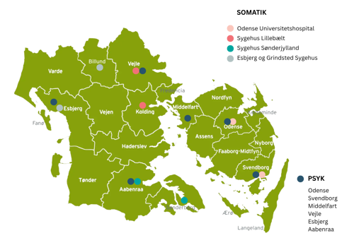 - Børne- og Ungdomspsykiatrien i blandt andet Odense, Esbjerg, Vejle og Aabenraa